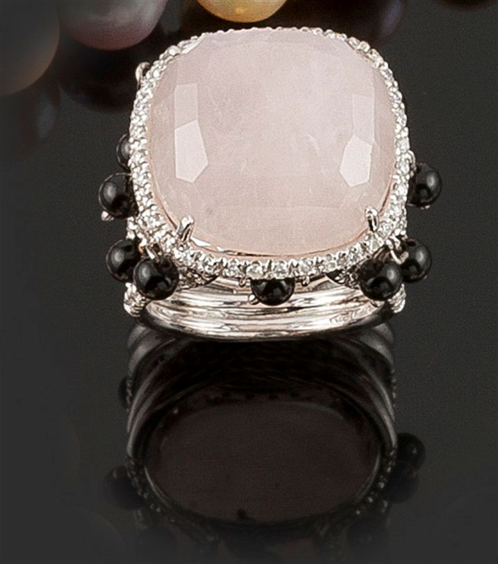 Lotto 797 | ANELLO Anello in oro bianco con al centro grande quarzo rosa sfaccettato,...