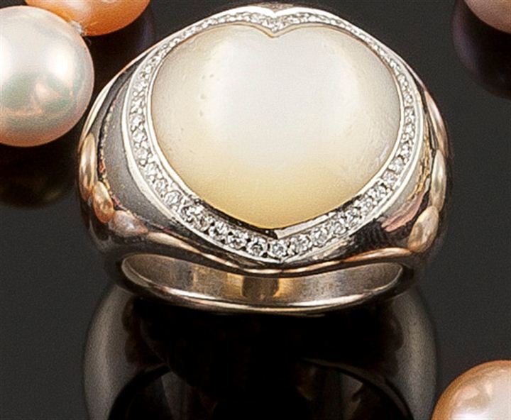 ANELLO Anello in oro bianco con al centro grande madreperla a forma di cuore...