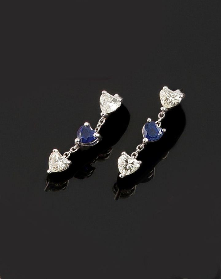 diamanti taglio a cuore per complessivi ct 1,70 ca e due zaffiri di taglio rotondo per ct 0,90 ca