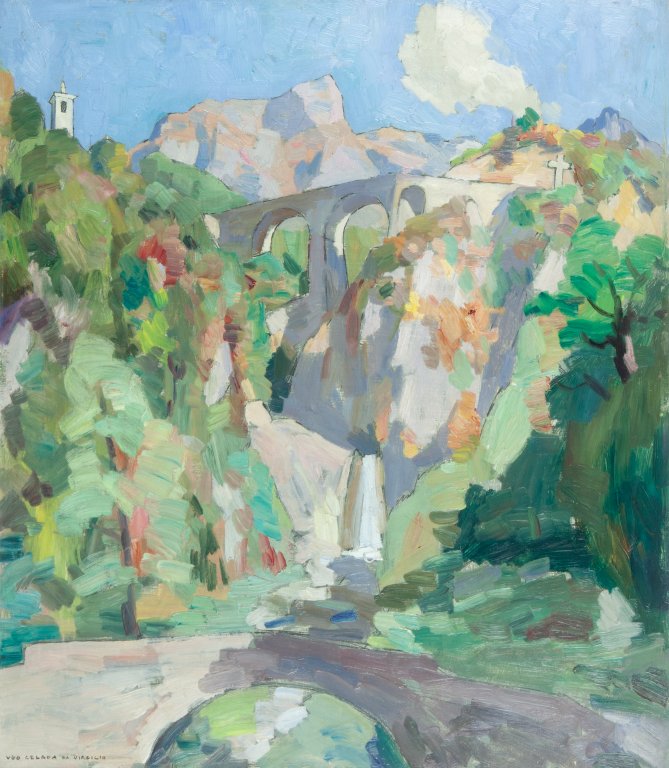 UGO CELADA (1895-1995) Senza titolo (Ponte)olio su tavola cm 91x79firmato in...