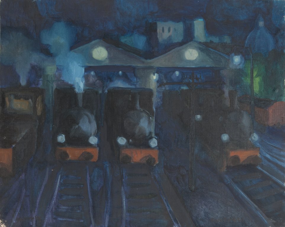 ELIANO FANTUZZI (1909-1987) Locomotive 1949olio su tela cm 50x60firmato,...