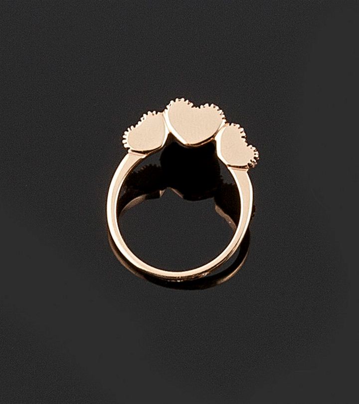 Anello in oro giallo, sommità con tre piccoli cuori,