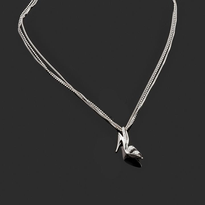 trattenenti un ciondolo a forma di scarpetta con diamantini taglio brillante per complessivi ct 0,20 ca