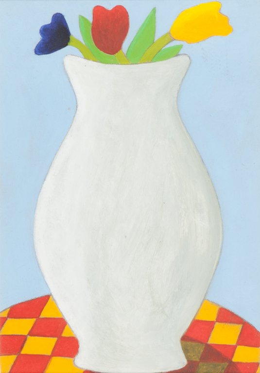 ENZO FORESE (1947-) Vaso di fiori 2001tempera su cartone cm 20x14firmato e...