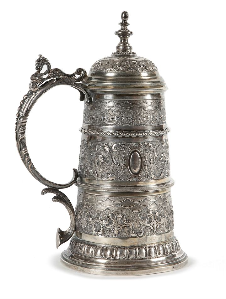 TANKARD IN ARGENTO Tankard in argento, Bologna ditta Serrazanetti, cesellato...