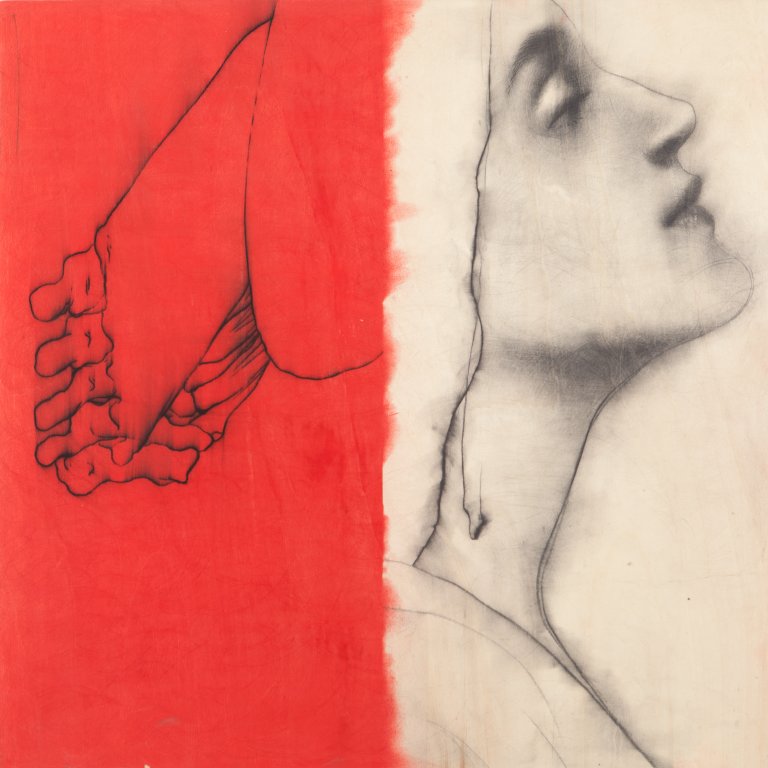 pencil, tempera and pastel on poplar board 47,24x47,24 in