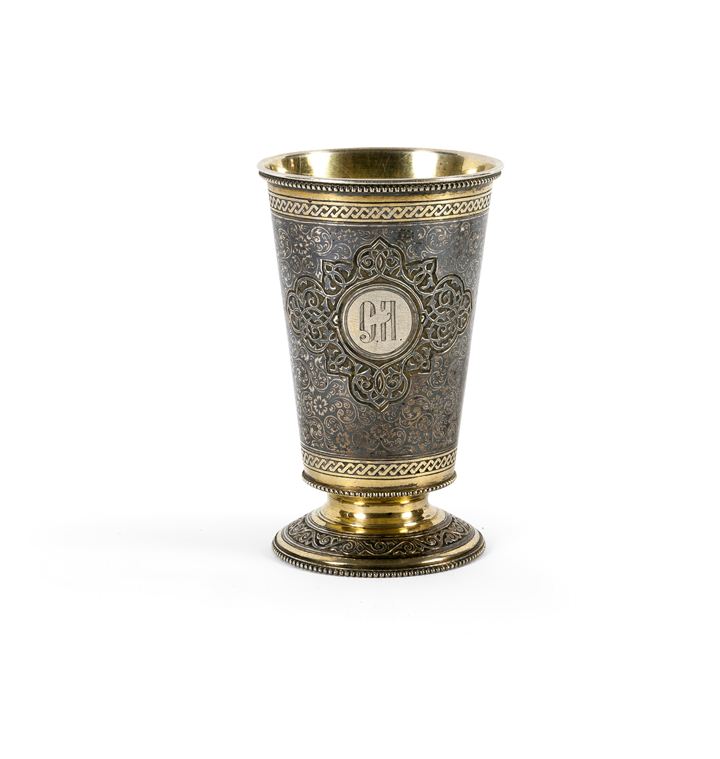 Bicchiere in argento dorato, 84 zolotnik, Mosca 1882, argentiere Vassili Semenov, assaggiatore Victor
