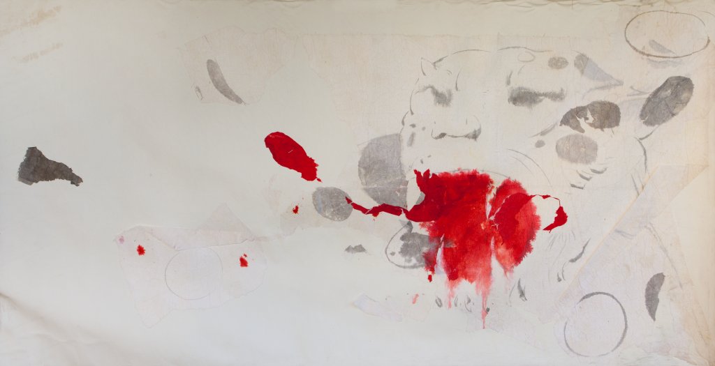 OMAR GALLIANI (1954-) Senza titolo 1981carta velina e acquerello su tela cm...