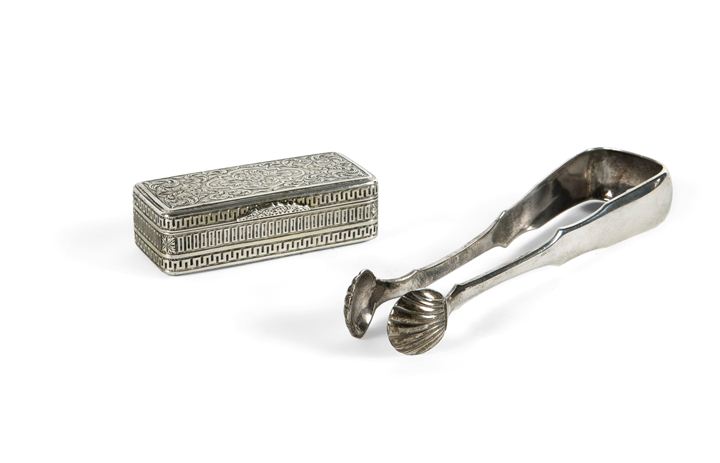 Pinza da zucchero, Odessa metà XIX secolo, argentiere Josef Galiano (1853-1862), punzone dell'assaggiatore e data non comprensibili
