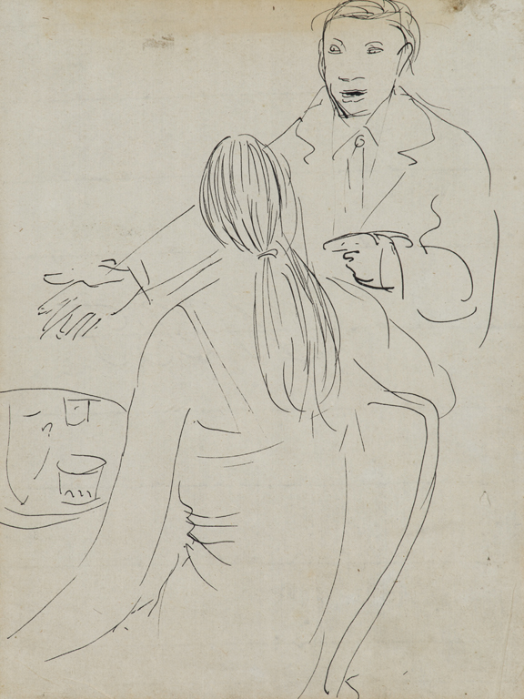 GIACOMO MANZÙ (1908-1991)Uomo e donna al barChina su cartacm...