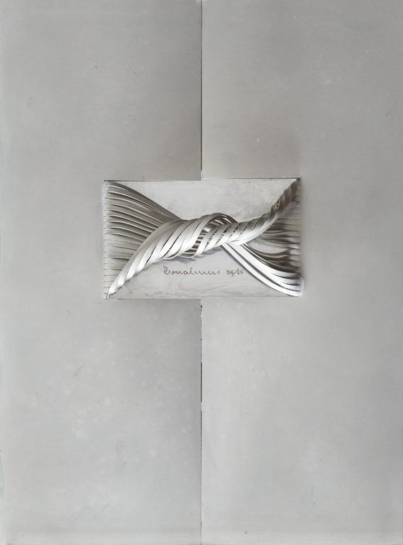 Multiplo in metallo a rilievo su tavola