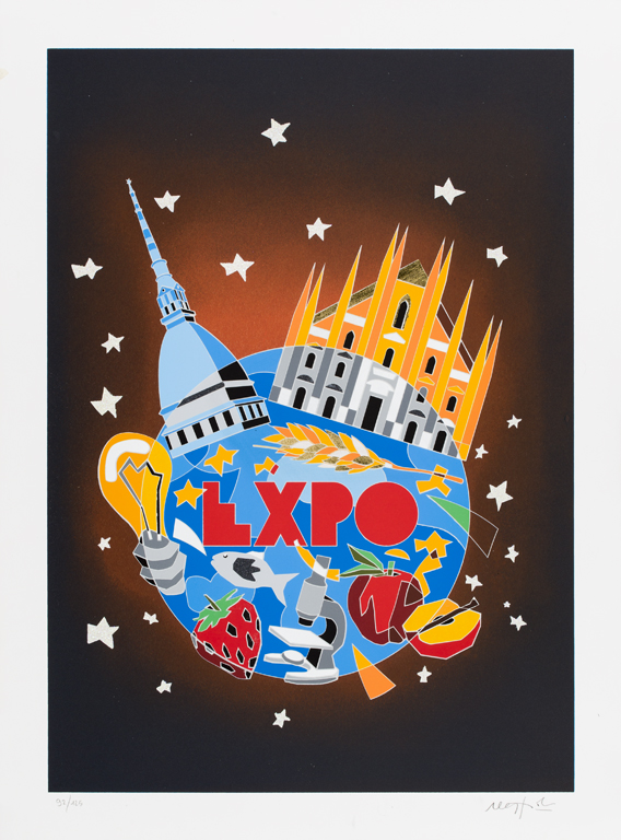 UGO NESPOLO (1941)ExpoSerigrafia polimaterica con applicazionicm 80x60Firma e...