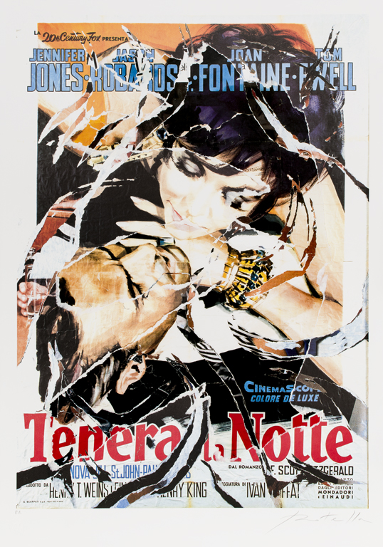 MIMMO ROTELLA (1918-2006)Tenera la notteMultiplo décollagecm 100x70Firma e...