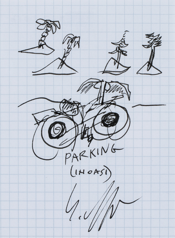 Lotto 242 | SERGIO DANGELO (1932)Parking (In oasi)Pennarello su cartacm 13,2x10Firma e...