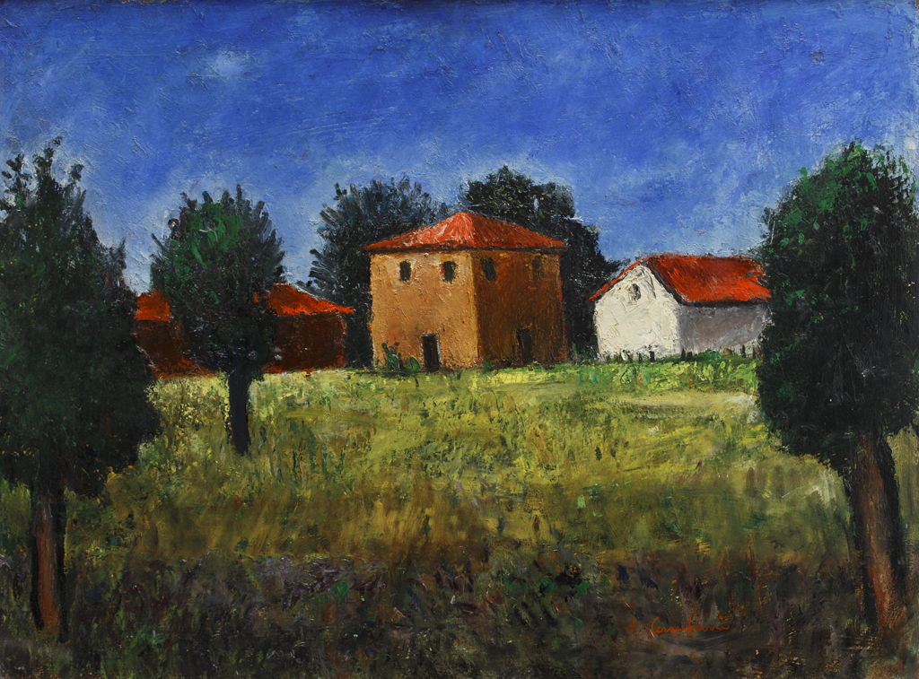 GISBERTO CERACCHINI (1899-1982)Paesaggio Umbro N.8Olio su cartonecm...