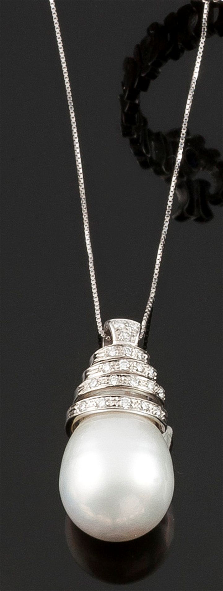 Lotto 897 | CATENA CON CIONDOLO Catena con ciondolo in oro bianco con grande perla...
