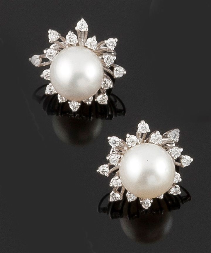 Coppia di orecchini in oro bianco con perle australiane del diam di mm 11,5