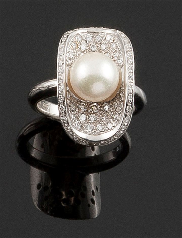 per complessivi ct 0,80 ca ed al centro una perla del diam di mm 8,5
