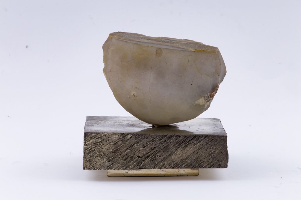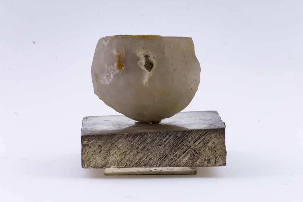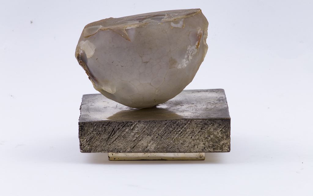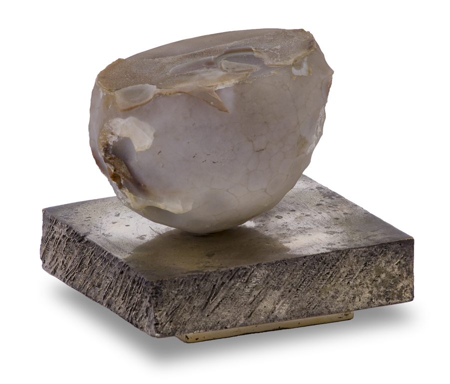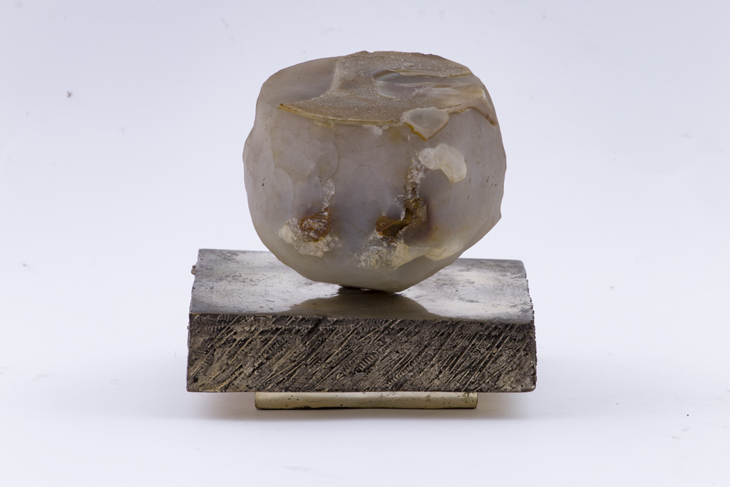 Scultura in bronzo argentato e geode di quarzo - Esemplare Unico