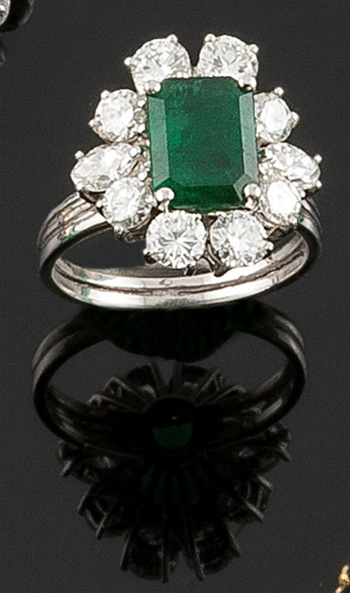 Lotto 913 | ANELLO Anello in oro bianco con smeraldo centrale taglio rettangolare...
