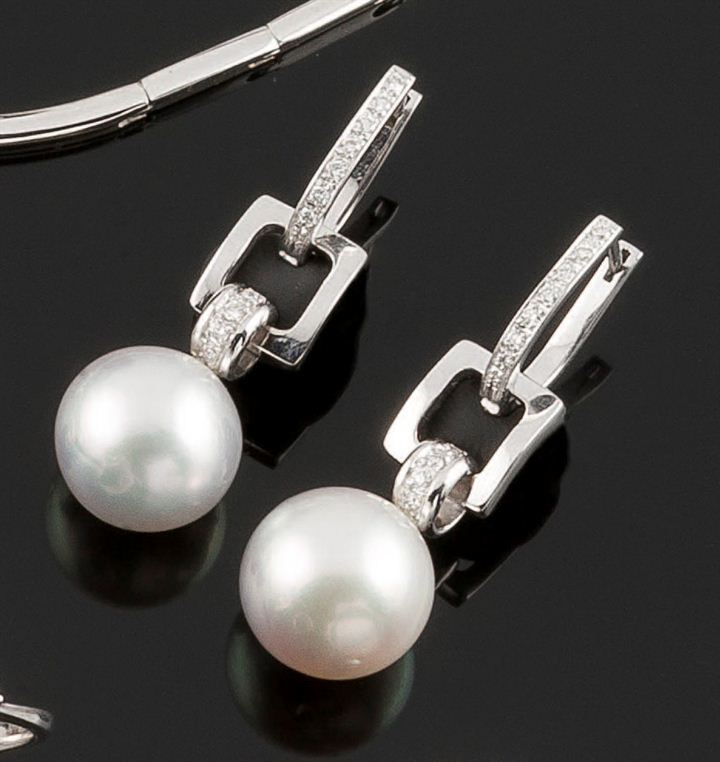per complessivi ct 0,30 ca, terminanti con due perle australiane dal diam di mm 12,3 a 12,7
