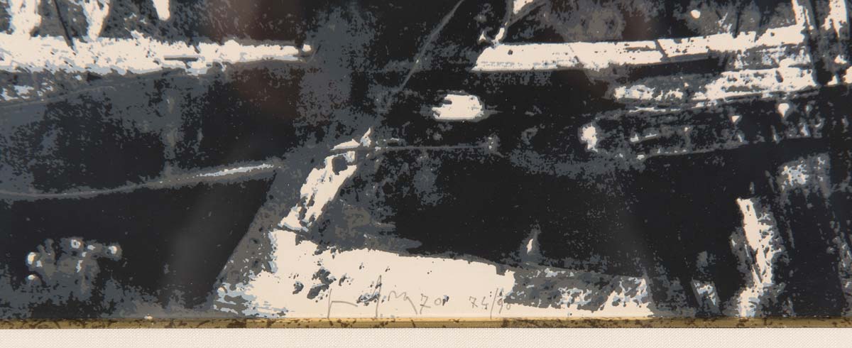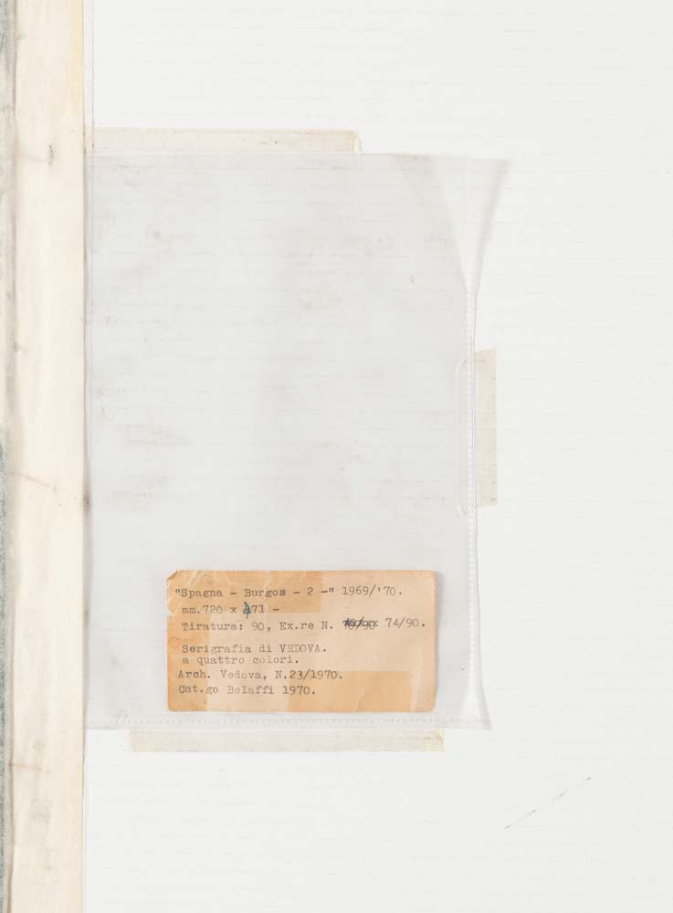 Emilio Vedova (Venezia 1919 – 2006), “Spagna – Burgos – 2 –”, 1969/70. Serigrafia a quattro colori su carta, firmata e datata in basso al centro Vedova 70 e numero di tiratura 74/90, H mm 720x471