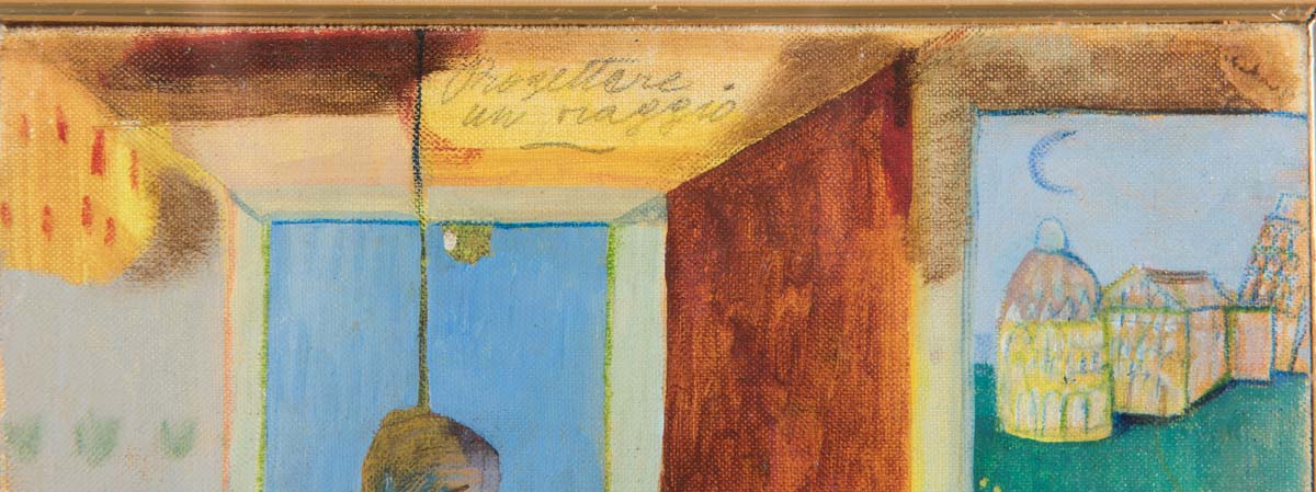 Antonio Possenti (Lucca 1933 – 2016), “Progettare un viaggio”. Olio su cartone telato, firmato al retro ‘Possenti’, H cm 30x20