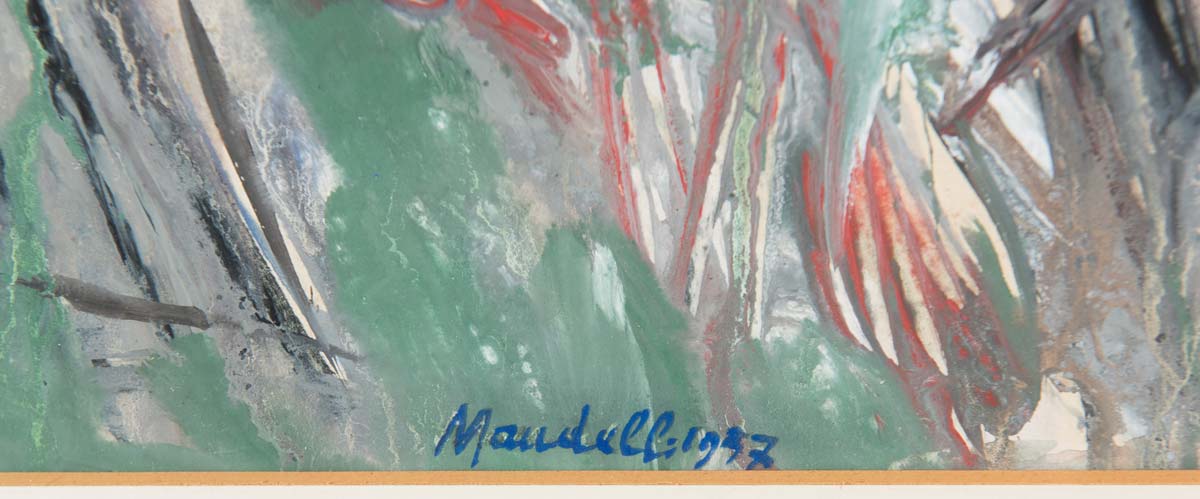 Pompilio Mandelli (Luzzara 1912 – Bologna 2006), “Informale”, 1957. Olio e tecnica mista su carta, firmato e datato in basso al centro Mandelli 1957, al retro reca dedica e firma dell’artista, H cm 48.5x34