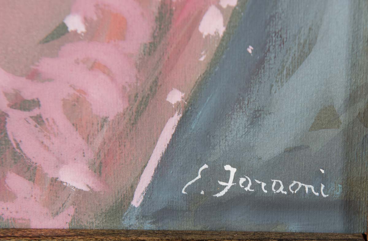 Enzo Faraoni (S. Stefano Magra 1920 - Firenze 2017), “La gonna rosa”, 1982. Tempera su carta, firmata in basso a destra Enzo Faraoni, H cm 50x35