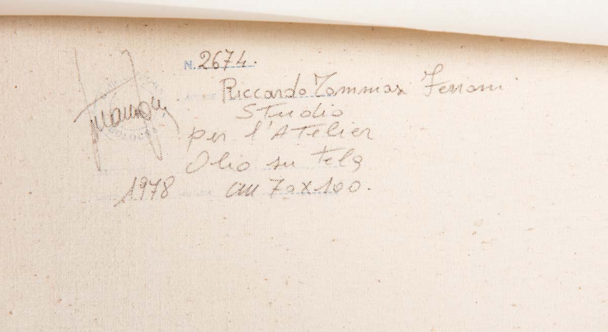 Riccardo Tommasi Ferroni (Pietrasanta 1934 – Pieve di Camaiore 2000), “Studio per l’Atelier”, 1978. Olio su tela, al retro opera firmata e datata ‘Riccardo Tommasi Ferroni 1978’, H cm 70x100
