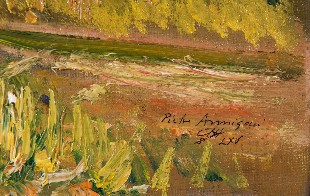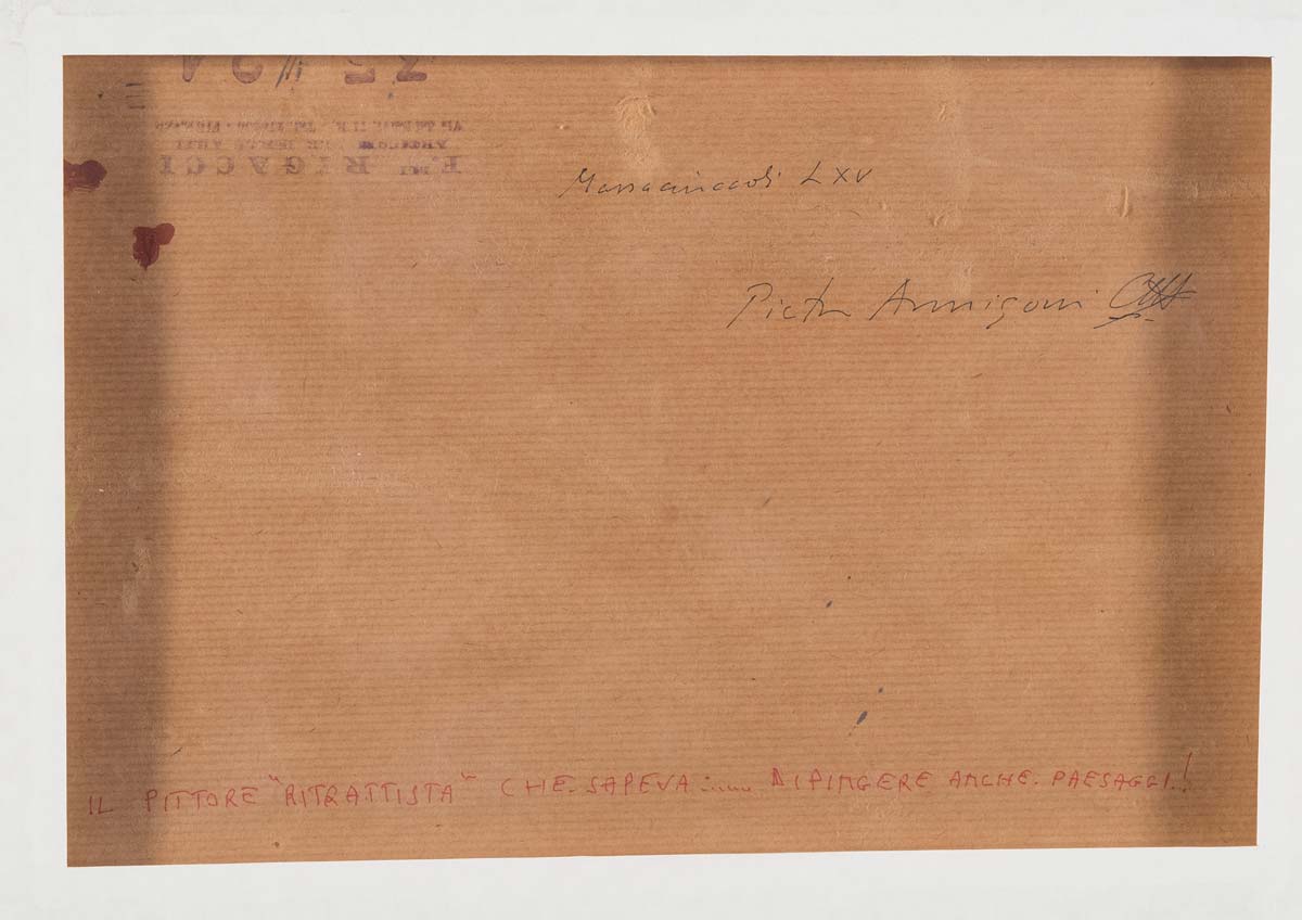 Pietro Annigoni (Milano 1910 – Firenze 1988), “Paesaggio”, 1965. Olio su cartone telato, firmato e datato in basso a destra Pietro Annigoni LXV, reca firma al retro ‘Pietro Annigoni’, H cm 24x35