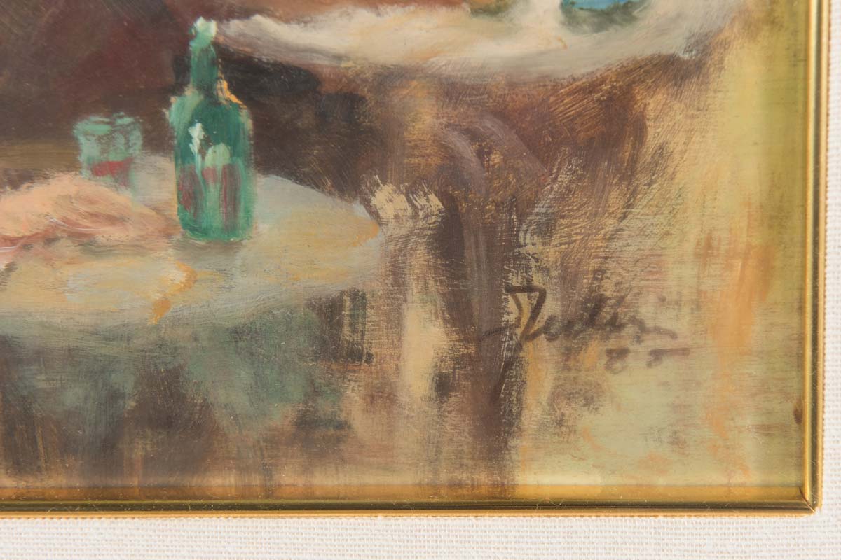 Fausto Ferlini (Castel Bolognese 1917 - 1992), “Al Ristorante”, 1985. Olio su tavola, firmato e datato in basso a destra Ferlini 85, H cm 35x26.5