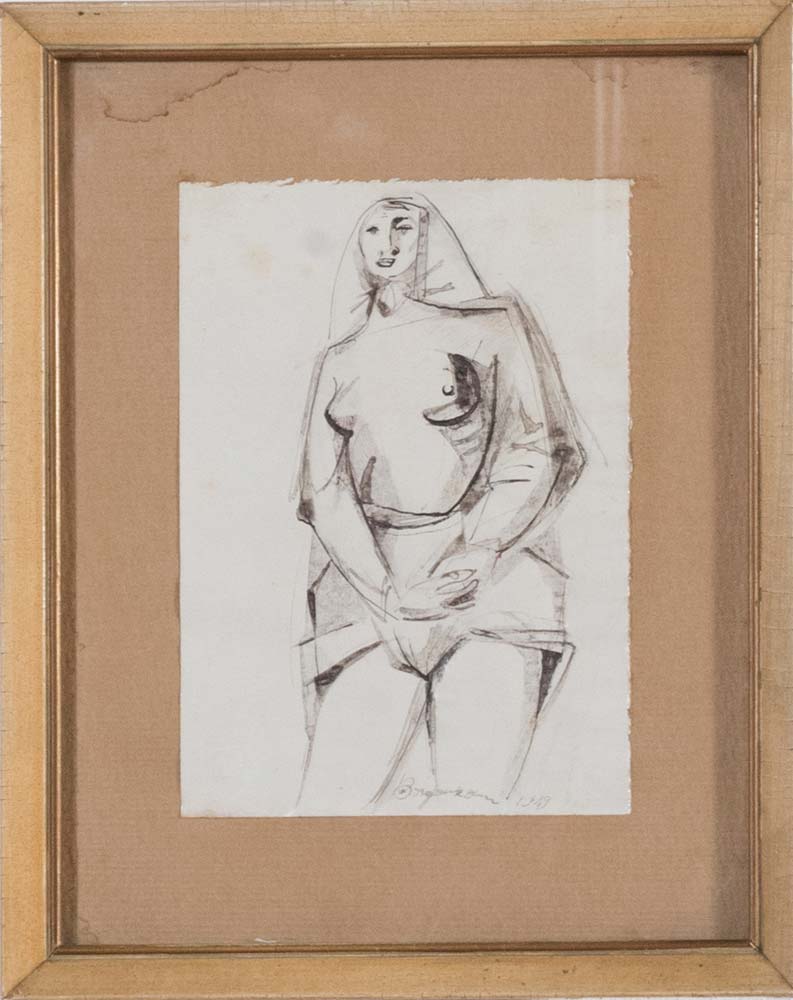 Aldo Borgonzoni (Medicina 1913 – Bologna 2004), “Mondina”, 1949. China su carta, firmata e datata in basso a destra Borgonzoni 1949, H cm 17.3x12.5