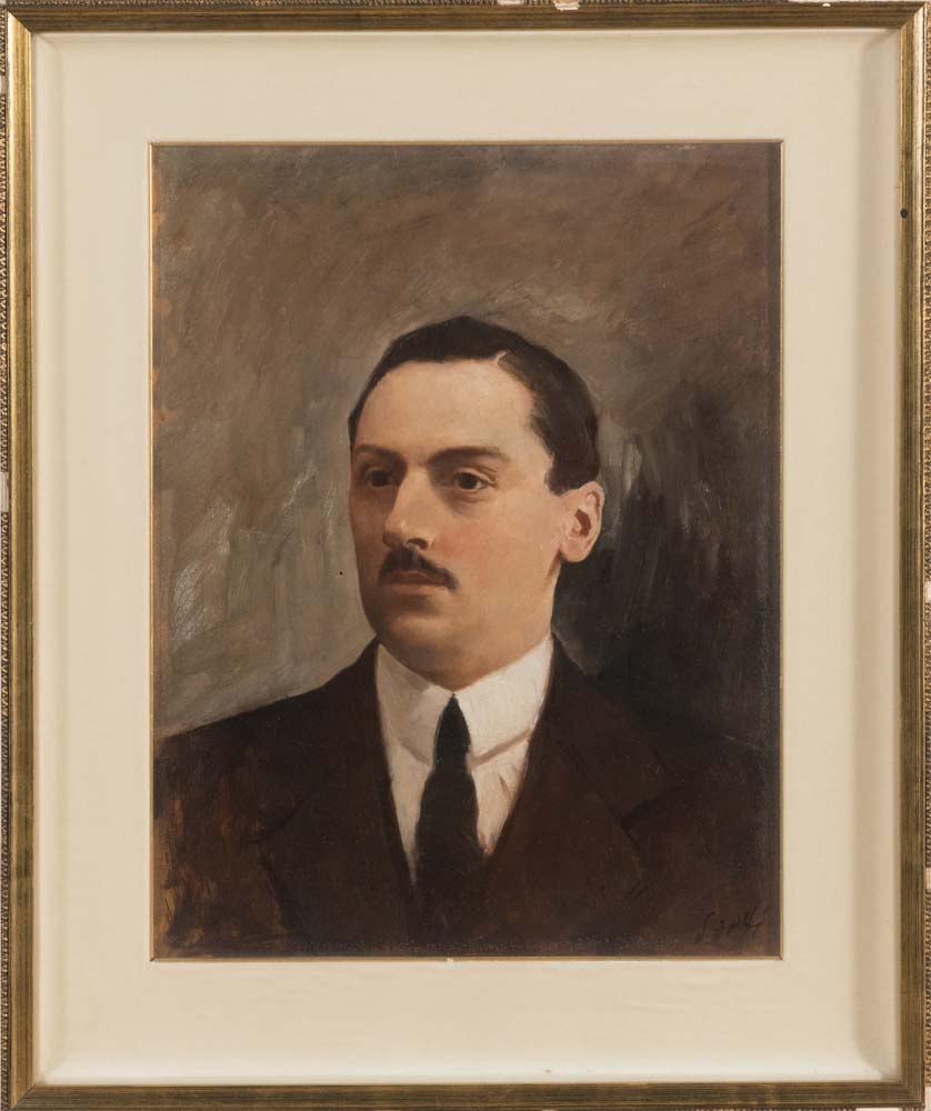 Bruno Saetti (Bologna 1902 – 1984), “Ritratto di Rodolfo Marchesi”, 1926. Olio su tavola, firmato in basso a destra Saetti, H cm 50x38