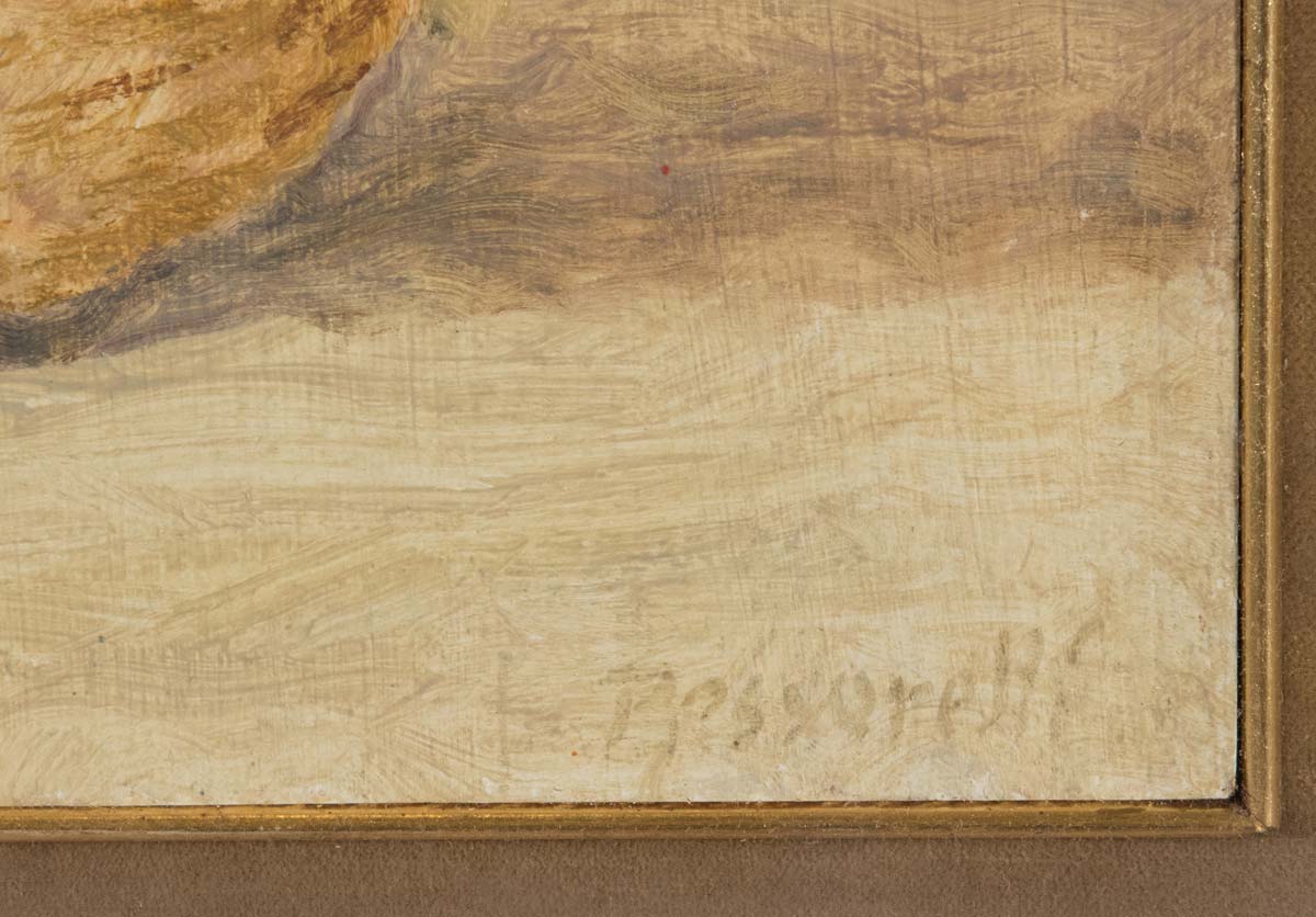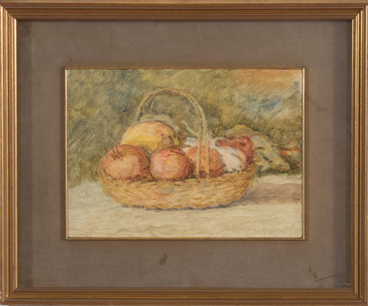 Germano Pessarelli (Aix-les-Bains 1928 – Bologna 2007), “Natura morta”. Olio su cartone, firmato in basso a destra Pessarelli, H cm 25x35