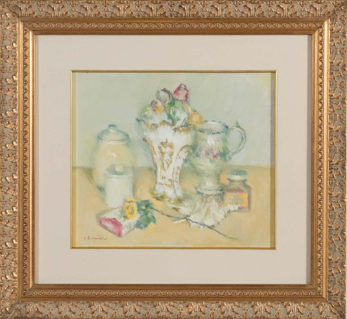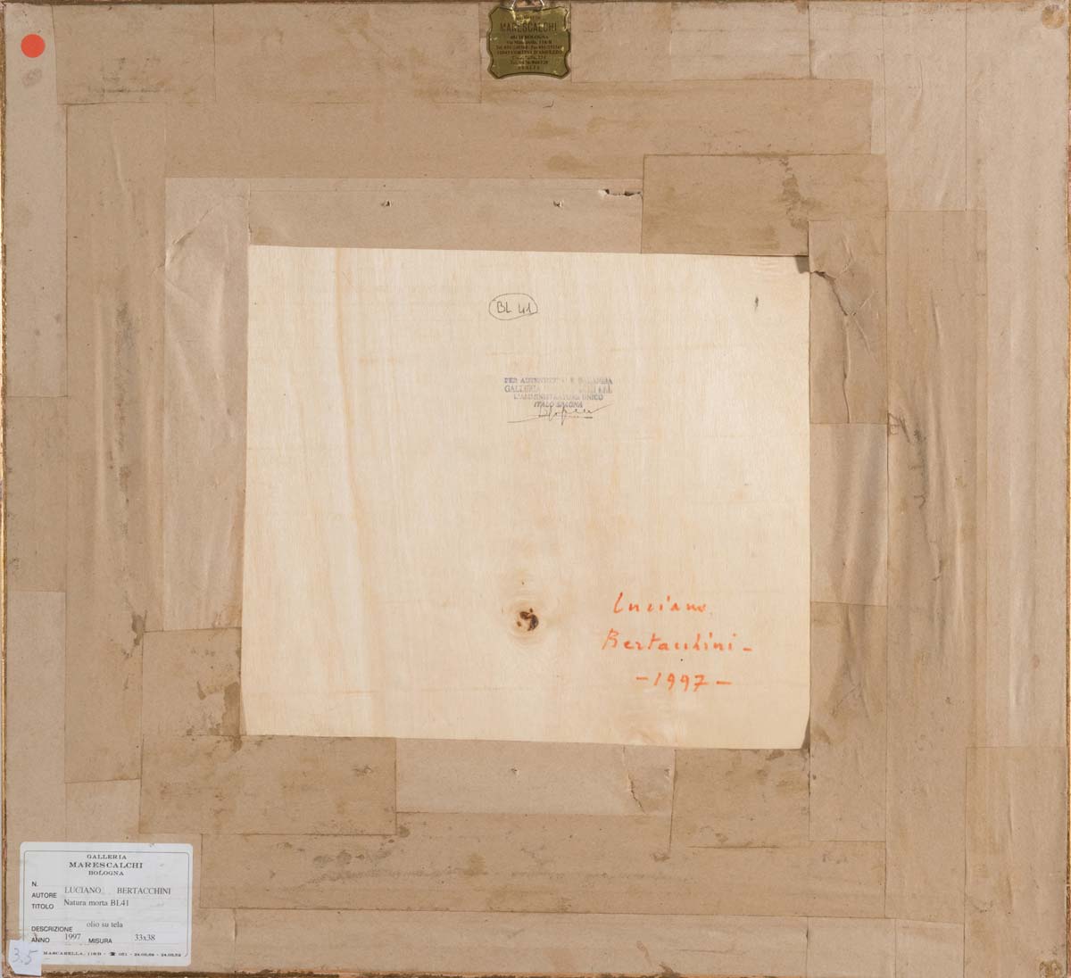 Luciano Bertacchini (Bologna 1913 - 2010), “Natura morta”, 1997. Olio su tela, firmato in basso a sinistra L Bertacchini, reca al retro firma e data ‘Luciano Bertacchini 1997’, H cm 33x38