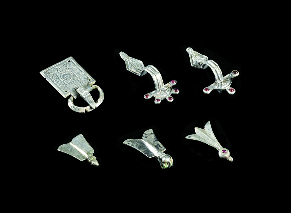 CINQUE FIBULE ED UNA FIBBIA IN ARGENTO DATAZIONE: V-VII sec. d. C. MATERIA E...