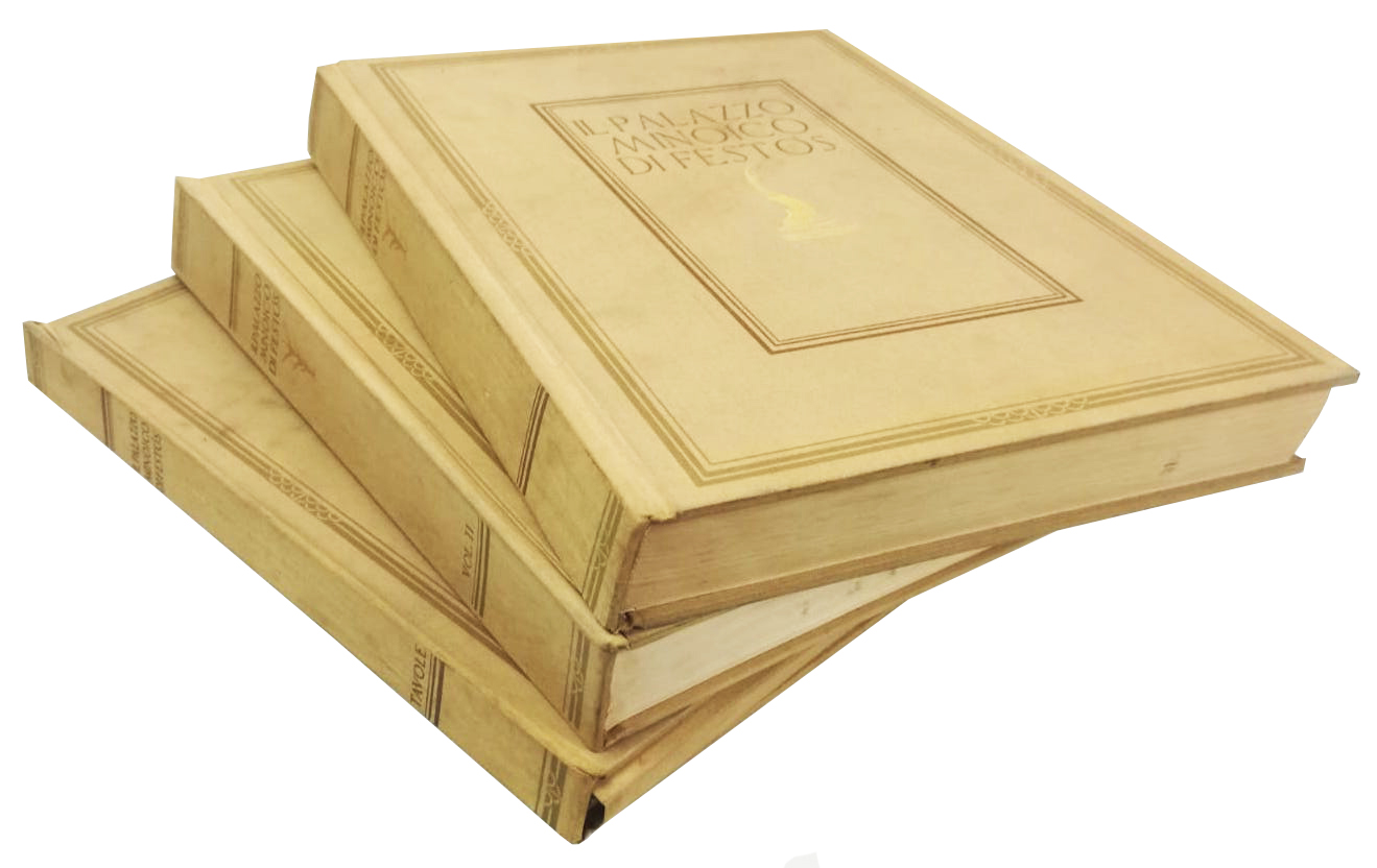 LOTTO DI VOLUMI DI ARCHEOLOGIA L. Pernier, Il Palazzo Minoico di Festos, In-4 p., 3 voll. (di cui 1 di tavole), tela edit., pp. XXIII, 475, (3); XII,647,(3); con un ricchissimo apparato iconografico di oltre 560 ill. in b.n. nel t. e in tavv. f.t. più volte ripieg. e con 1 tavola a colori (nel 2° volume), Roma 1935-1951, ed altri nove volumi di tema archeologico (12)