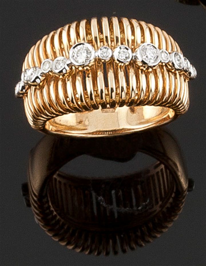 ANELLO Anello in oro rosa, a fascia, sommità a griglia con elemento centrale...