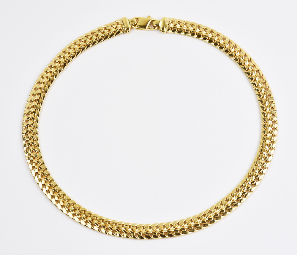 COLLIER IN ORO GIALLO maglia a barbazzale, punzone 750, g 32 lungh. cm 43...