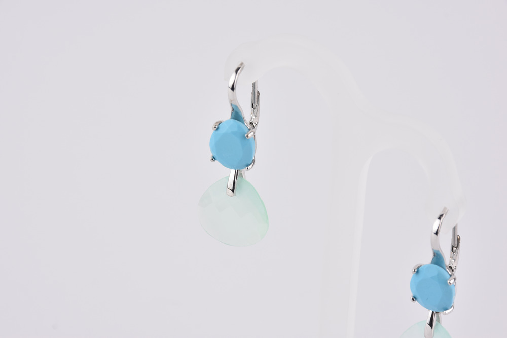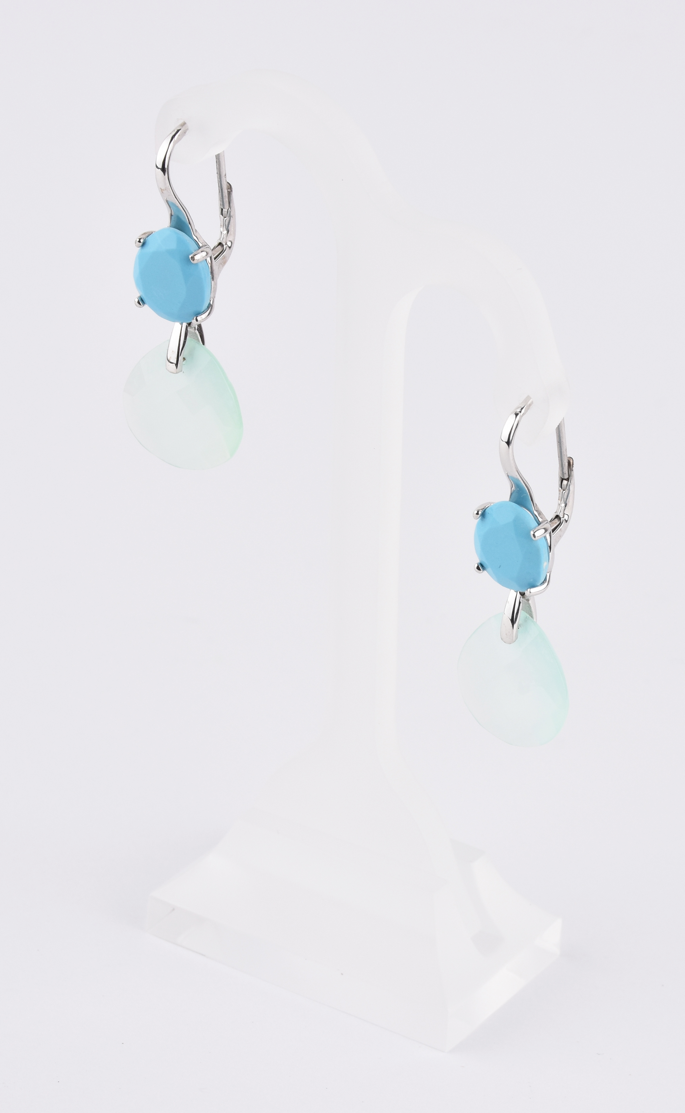 PAIO DI ORECCHINI PENDENTI IN ORO BIANCO, AGATA AZZURRA E PASTA DI TURCHESE...