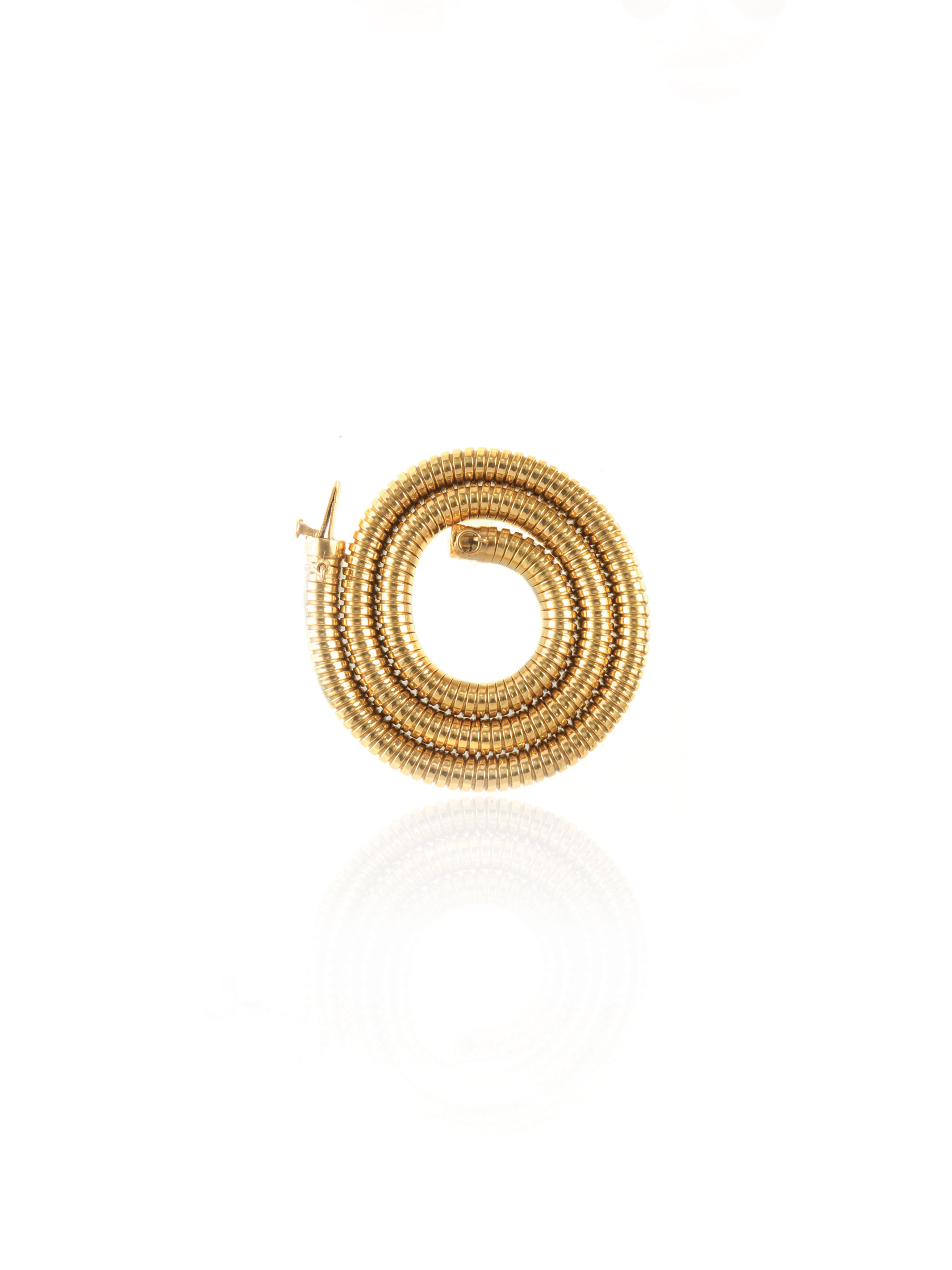 COLLIER DE CHIEN IN ORO GIALLO in maglia tubogas a sezione ovale utilizzabile come chocker o bracciale a doppio giro, punzone portoghese, g 30,9 lungh. cm 31 Stato di conservazione complessivo ottimo. YELLOW GOLD TUBOGAS CHOKER Overall excellent condition.