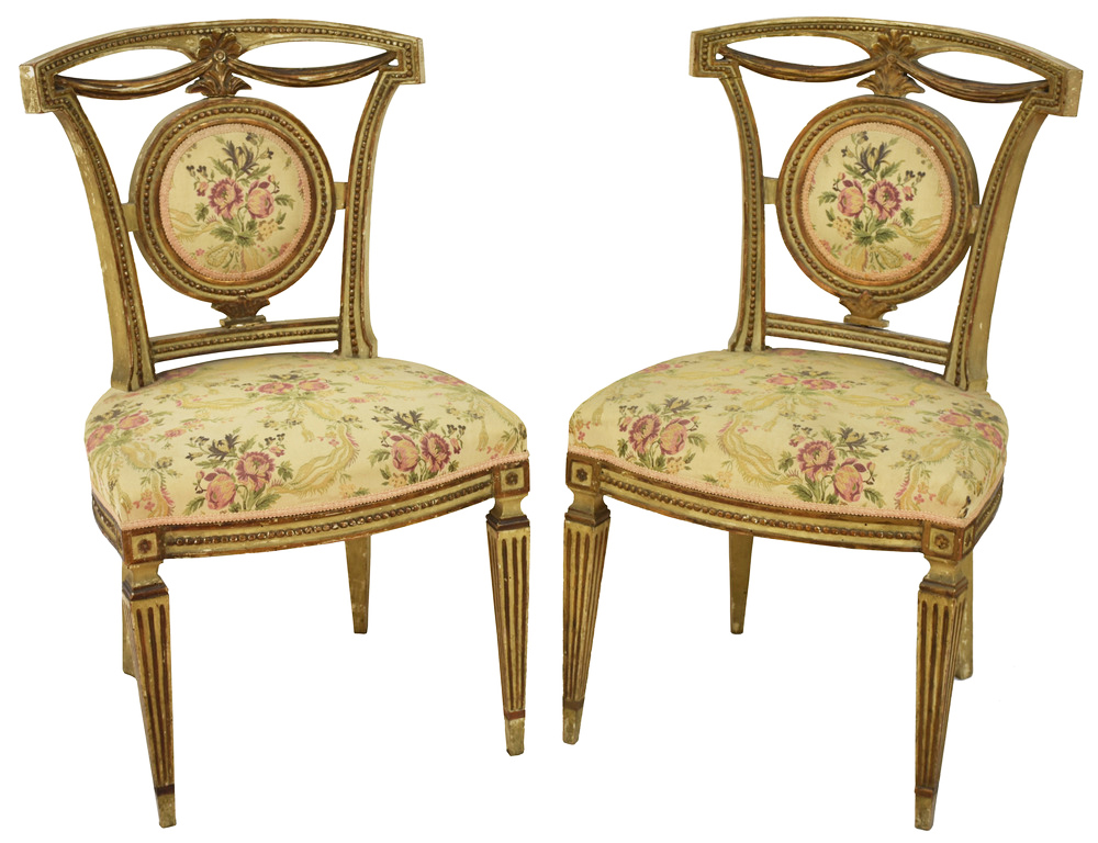 Coppia di sedie laccate altezza seduta cm 47 fine XVIII secolo A couple of XVIII Century laquered wood chairs