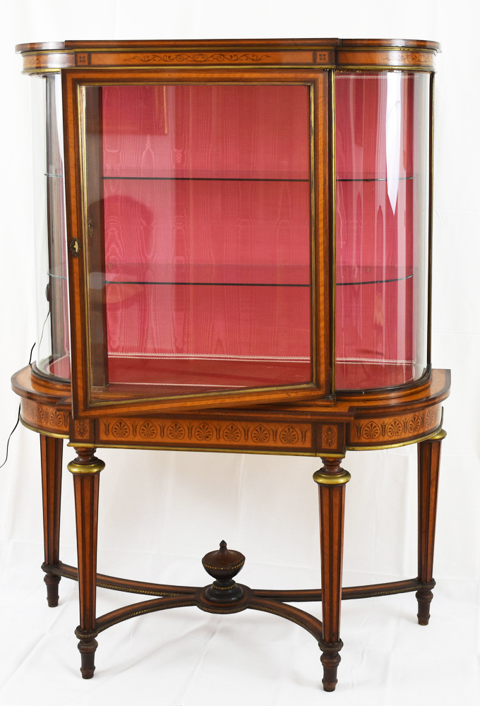 Vetrina in legni di varie essenze con intarsi cm 162x44x106 prima metà XIX...
