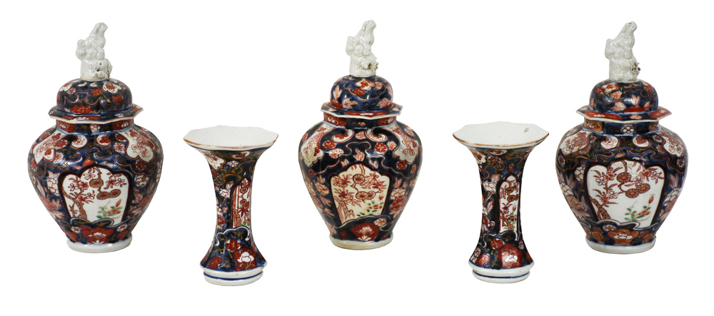Lotto composto da 5 ceramiche Imari altezza cm 16 e 25 XVIII secolo difetti,...