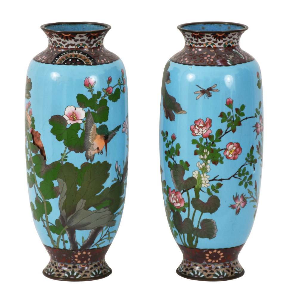 Coppia di vasi cinesi in smalto su rame altezza cm 39 fine XIX secolo difetti e mancanze A couple of XIX Century Chinese enameled copper vases