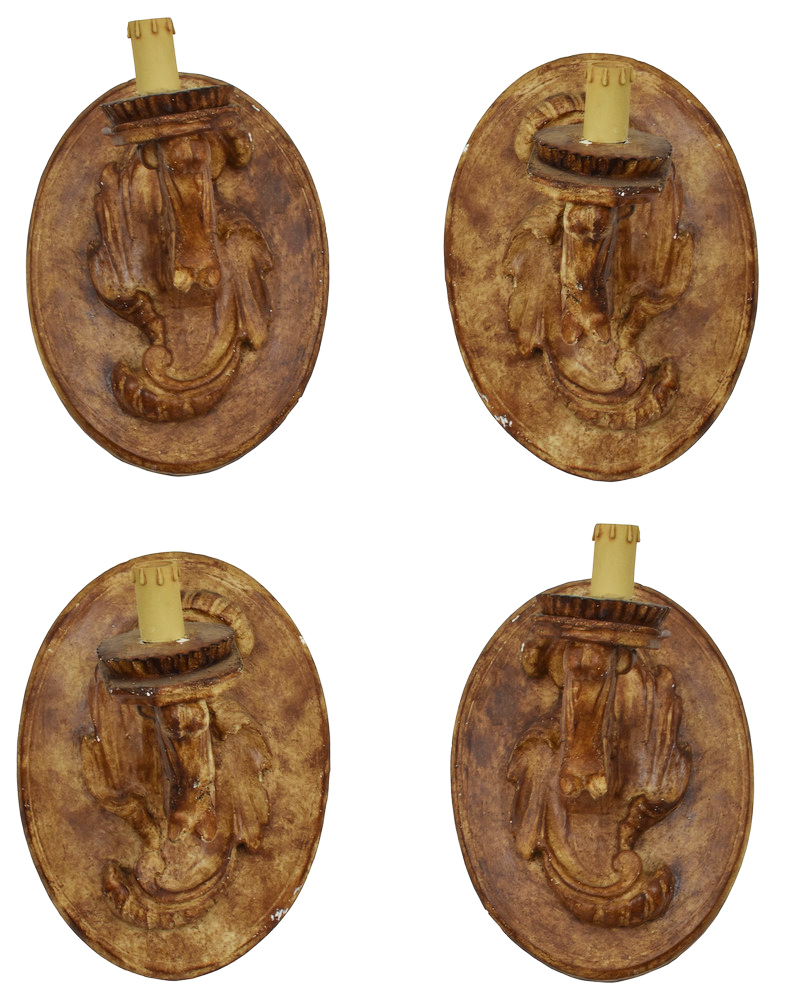 Lotto composto da 4 appliques in gesso dipinto copia dall’antico elettrificate altezza cm 38x28, aggetto cm 33 cm A lot of 4 plaster appliques