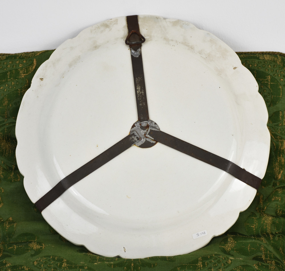 Piatto Lodi, Bottega di Antonio Ferretti corpo circolare, bordo orlato, base piana decoro al "mazzetto" di fiori vari del tipo contornato, tralci di fiorellini fogliati maiolica a terzo fuoco in policromia, diam cm 36,5 seconda metà XVIII secolo A late XVIII Century Antonio Ferretti maiolica plate