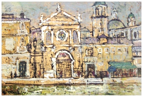 GIUSEPPE CAVALLINI Livorno 1916 – Livorno 2000 Chiesa alle zattere (Venezia) 1970 Olio e tec. mista su tavola cartonata 40 x 60. Firma in b. a s.; sul verso firma + timbro e scritte studio dell’artista. base: 100