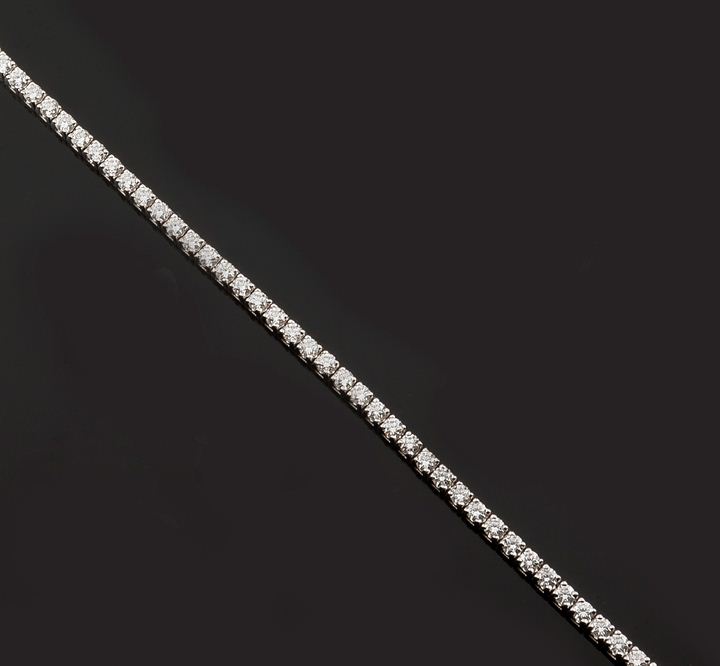 Bracciale in oro bianco, modello tennis, con quarantacinque diamanti taglio brillante per